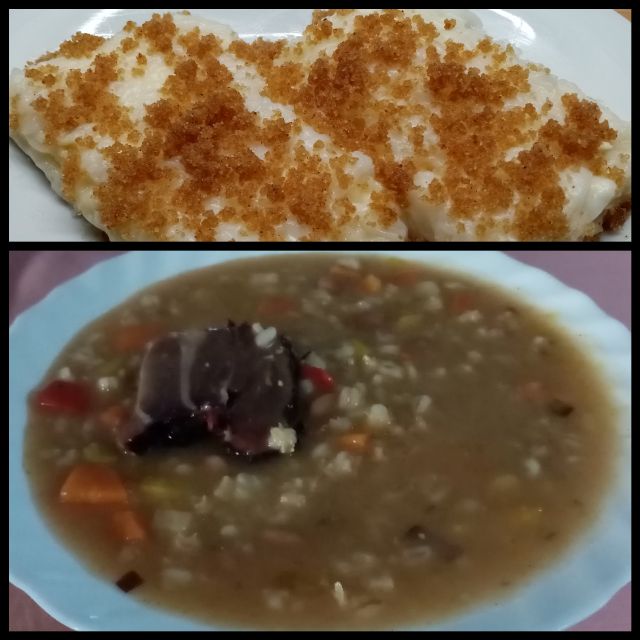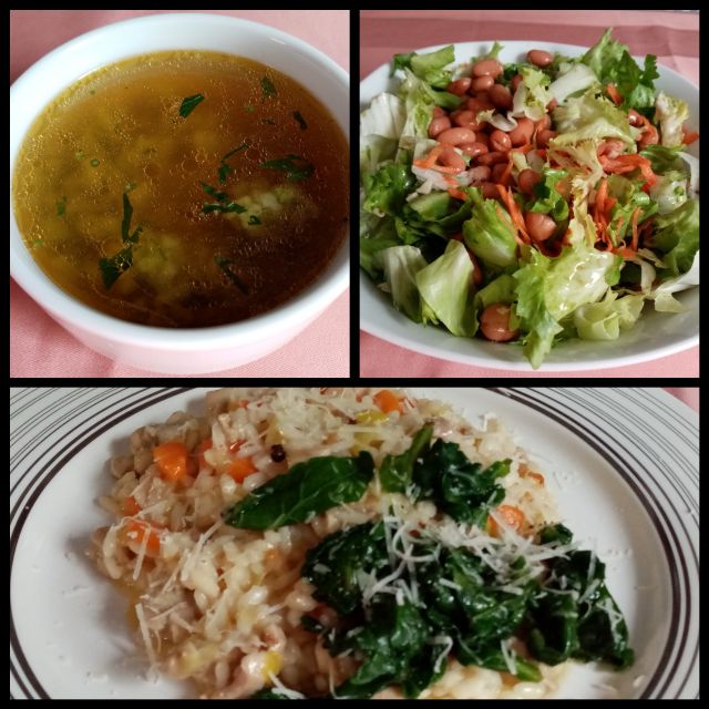 Goveja juhica z ribano kašo; piščančja rižota s špinačo; endivija s fižolom: