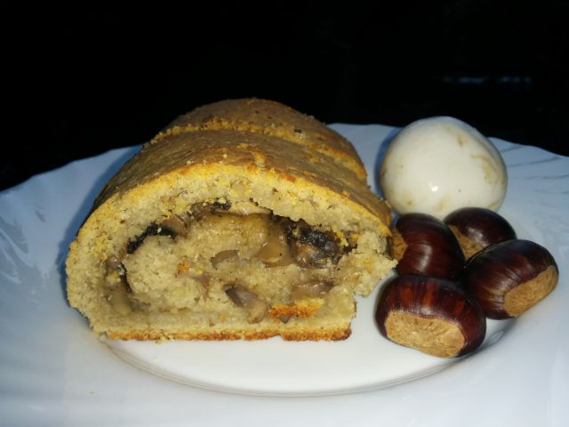 včeraj sem za kosilo spekla kostanjevo rolado s šampinjoni.
