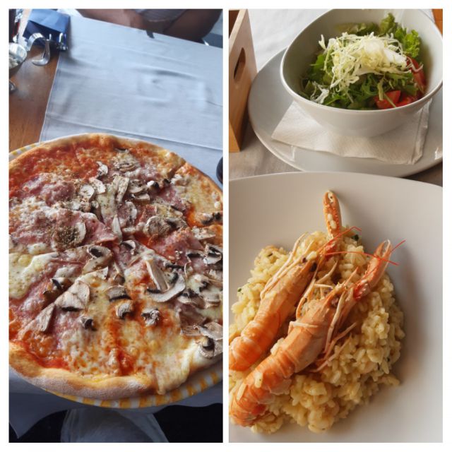 Danes v Rovinju zame rižota s škampi, solata, sin pizzo, mož špagete