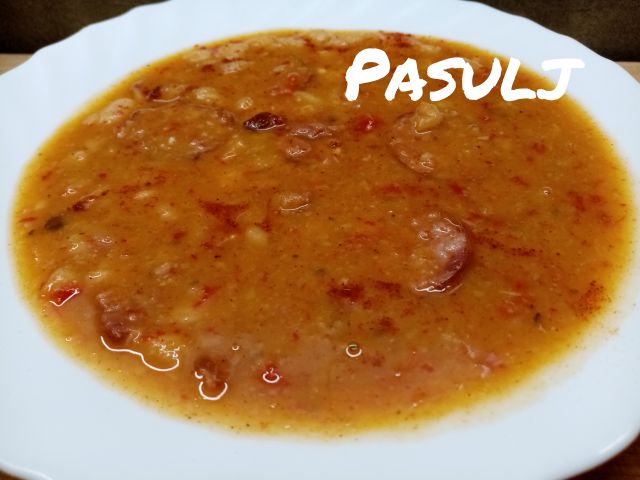 Pasulj s klobaso in suhimi rebri; buhtlji z nutelo in marmelado