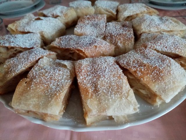 Nedelja: morski sadeži z njoki in gobicami v smetanovi omaki, zelena solata. Sladica ocvrte jabolčne rezine. Popoldan pečen kostanj in kozarec rdečega vina.