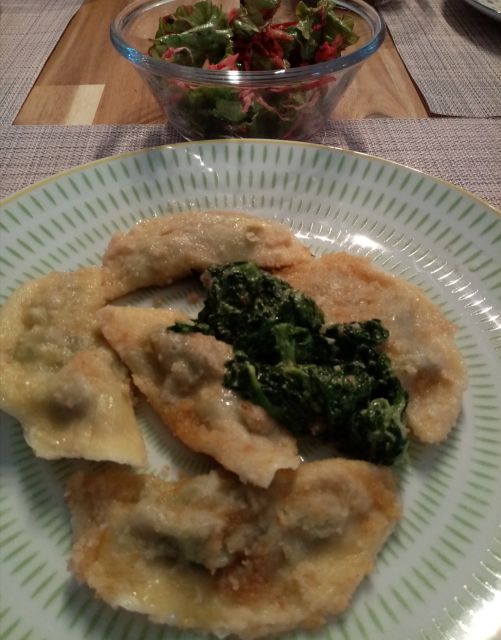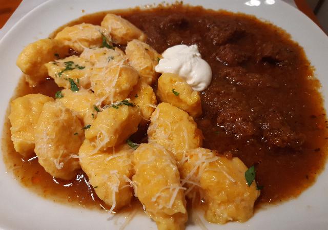 Danes sem sprobala recept bučni žličniki s skuto ( midva kuhava). Recept sem malo spremenila, ker sem delala s pirino gladko moko. Dodala sem žlico pšeničnega zdroba in nariban parmezan. Žličniki so super, rahli. Zraven telečji golaž in zeljna solata.
