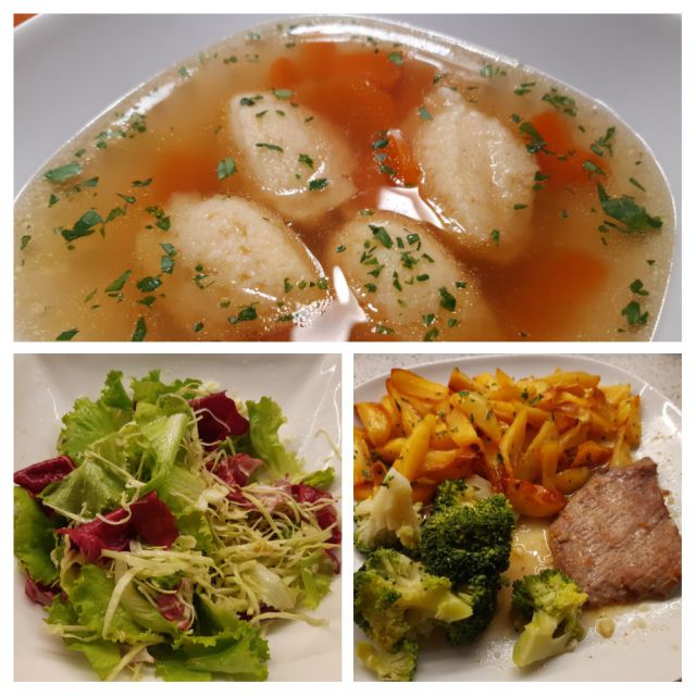 Danes goveja juha z zdrobovimi cmoki, telečji zrezek, pečen krompir, brokoli, mešana solata