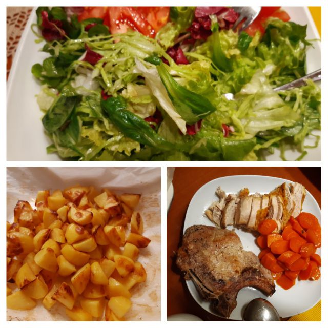Danes piščančja prsa, sv.kotlet, pečen krompir, mešana solata