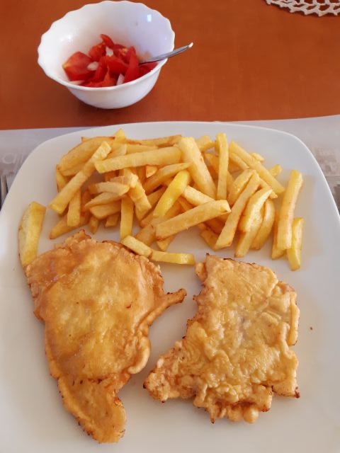 Danes goveja juha z rezanci, pariški zrezek, pomfri, paradižnikova solata