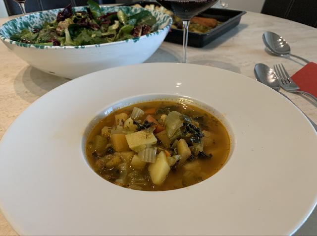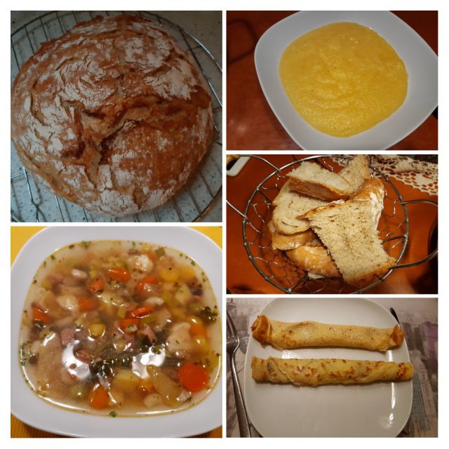Danes zelenjavno- mesna juha, polenta, palačinke, kruh