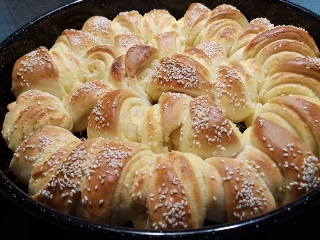 Z makarončki podkrepljen pasulj iz zaloge; skutni zvitki
