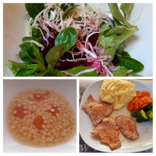 Danes goveja juha z zvezdicami, zrezki, pire krompir, zelenjava, solata