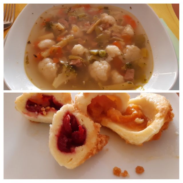 Danes zelenjavna mineštra, polenta, kruh, marelični in višnjevi cmoki