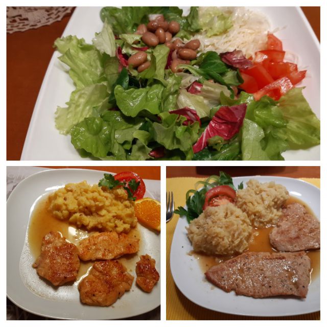 Danes naravni zrezki, pražen krompir, mešana solata