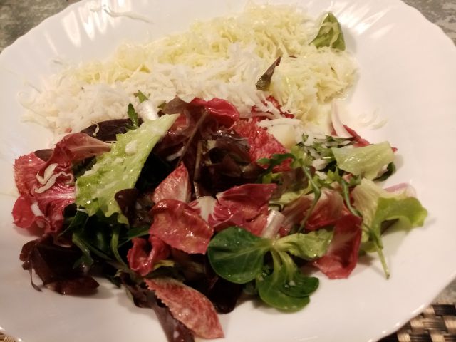 mešana solata, rdeči radič, motovilec s fizolom