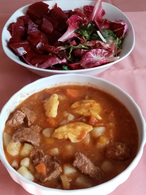 Goveji golaž z žličniki, radič/rdeča pesa