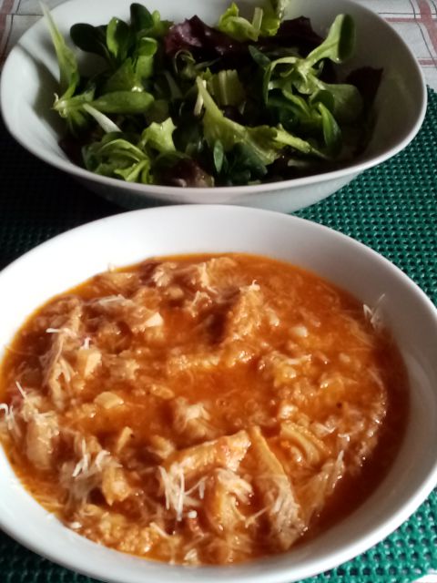 Krompirjeva juha s stročji fižolom (domač iz skrinje), piščančja rižota s zelenjavo in ajdovo kašo, mešana solata, kava... Ta teden sem na dopustu in lahki večkrat napisem, kaj smo jedli