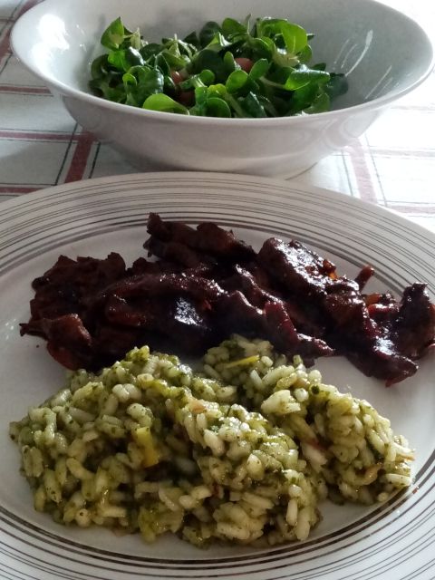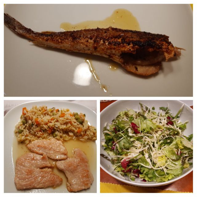 Danes zelenjavni riž, naravno pečeni zrezki, zame oslič, mešana solata