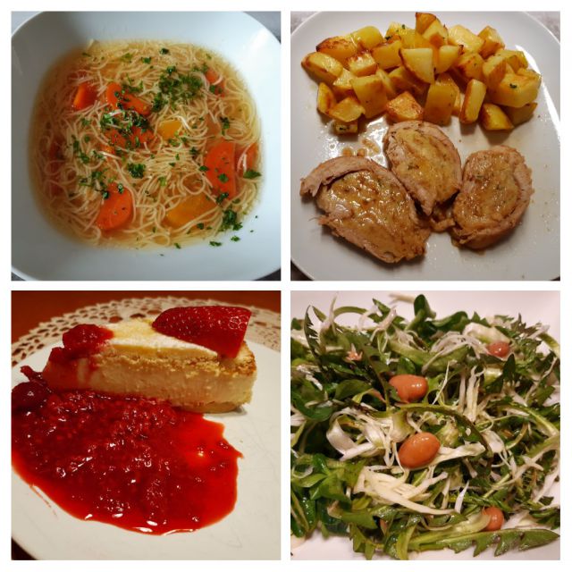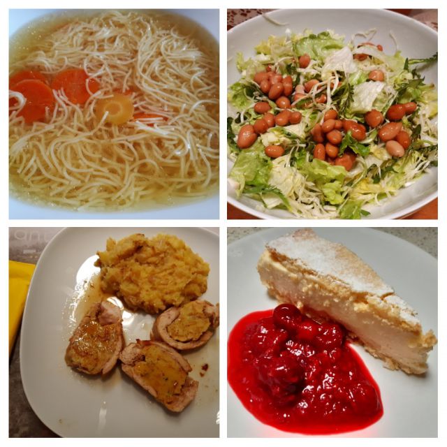 Včeraj: zelenjavna juha, krompirjevi cmoki s polento in borovnicami, jabolčna čežana