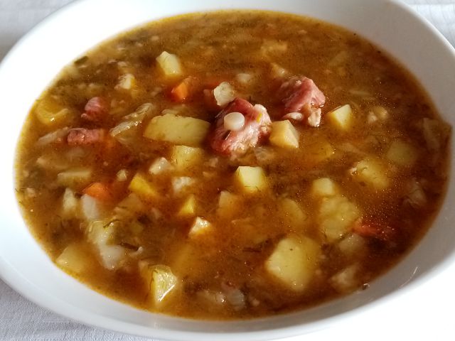 Včeraj zelenjavna mineštra, žemljice, slivovi in marelični cmoki.