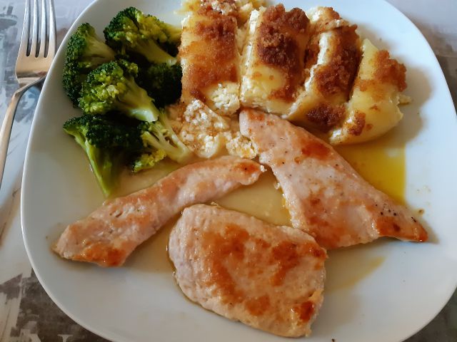 Včeraj domači skutini štruklji, naravni zrezki, brokoli, mešana solata