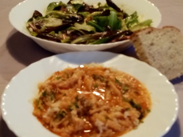 Danes mesna omaka, testenine, solata, zame regrat s krompirjem, file lososa s holandsko omako....sladica v kozarčkih..