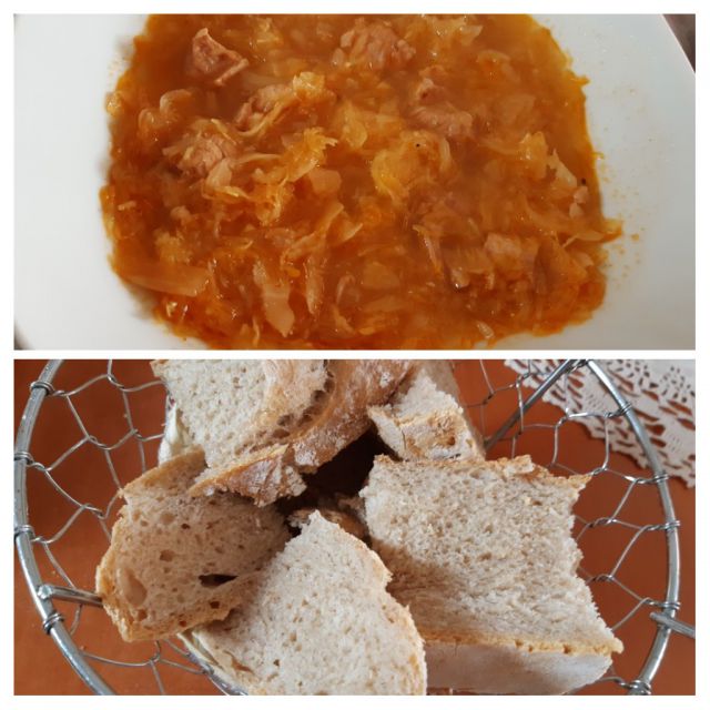 Goveja juha, pečen piščanec, pražen krompir, tenstana jabolka, tenstana zelenjava (od včeraj).