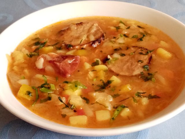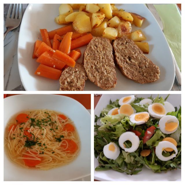 Danes goveja juha z domačimi rezanci, stefani pečenka brez jajc, zame piščančja kračka, pečen krompir, mešana solata