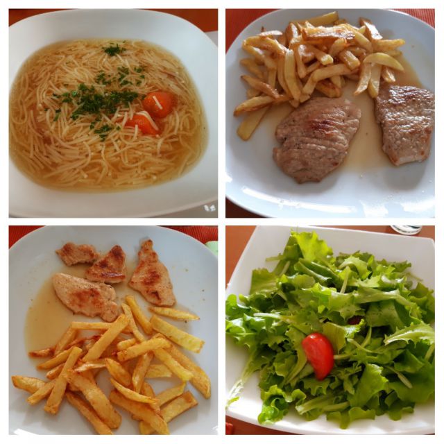 Danes goveja juha z rezanci, pomfri, zrezki, solata