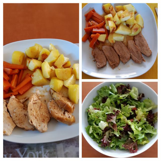 Danes pečeni piščančji in telečji file, krompir, domača solata