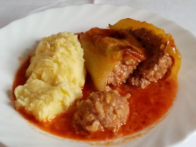 Včeraj pa smo jedli goveje meso v golažu z lečo ter gluhe knedlje ![]()