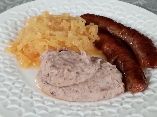 Kisla repa, matevž, kuhane, potem popečene klobase