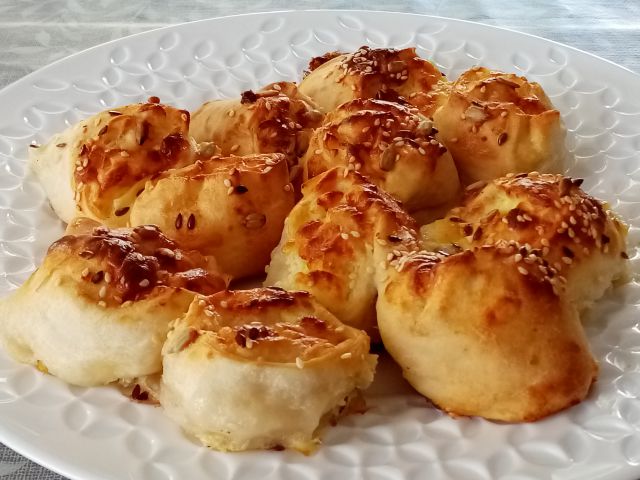 Vampi iz zaloge (z dodatkom krompirja); zelena solata; češnjevo pecivo