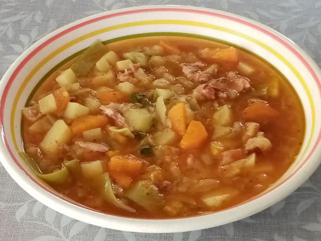 stročji fižol in mlad krompir, zabeljena z ocvirki in kislo smetano. ![]()