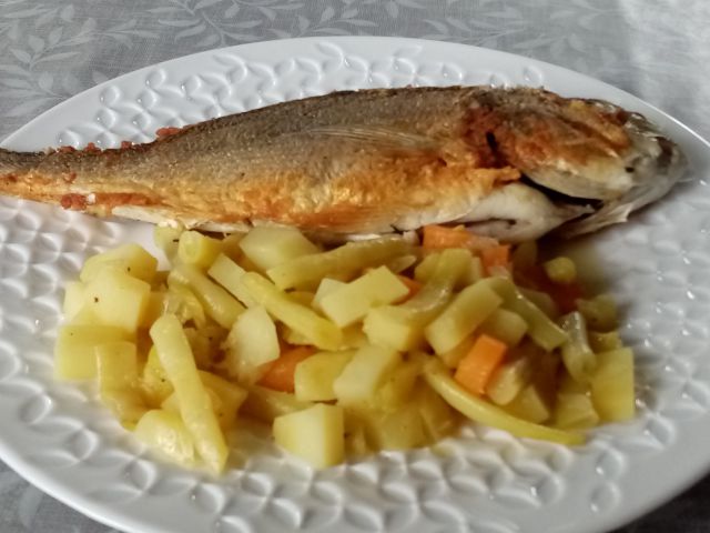 Pečena orada, zelenjavni mixi