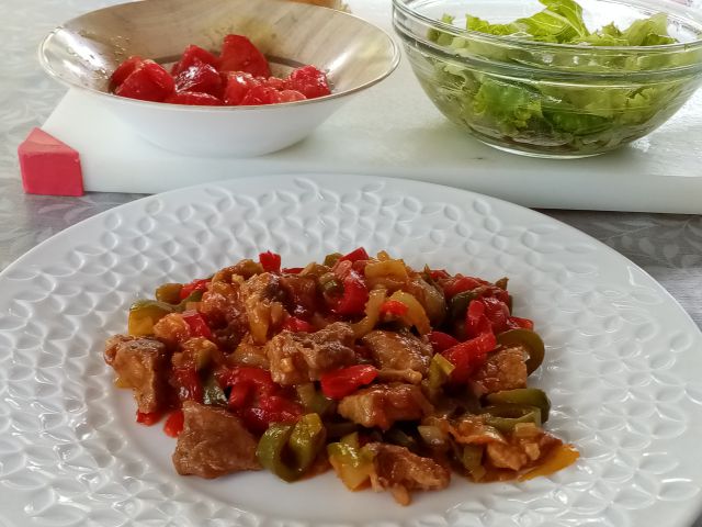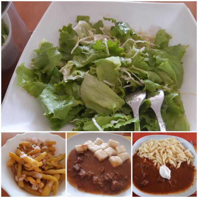 Danes ostanek golaža s testeninami in njoki, solati