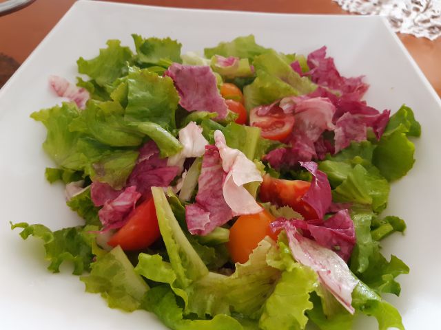 Midva sva danes jedla pečeno postrv, pire krompir, mešano solato, pivo in kavo. ![]()