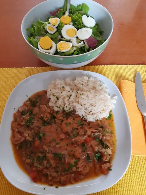 Danes za moža zrezek v omaki z jurčki, riž, solata