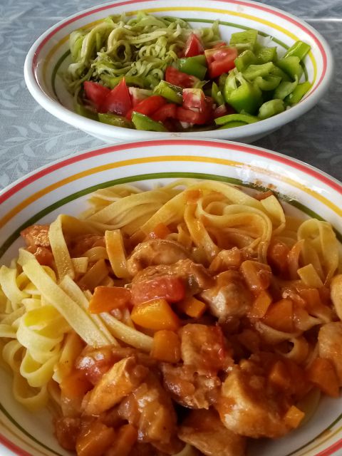Obožujem piščančji paprikaš s širokimi rezanci. Jao, Dragička, zakaj nisem bližje? Sploh zdaj, ko imam čas ... :)