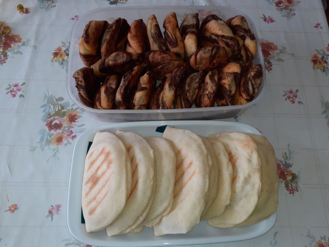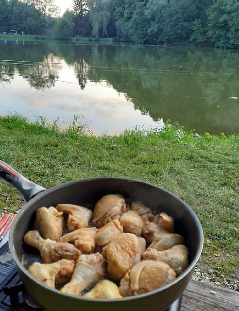 Včeraj sem na vikend ribolovu na ribniku, z malo kuhinjske opreme, za večerjo pripravila pečeno meso, pečena jajčka in mešano solato, za sladico pa doma pečeno pecivo z drožmi in rožiči, dopoldanska malica pa tudi doma pripravljeni toast sendviči, enako z drožmi. Seveda ni manjalo niti pivo in kava ![]()