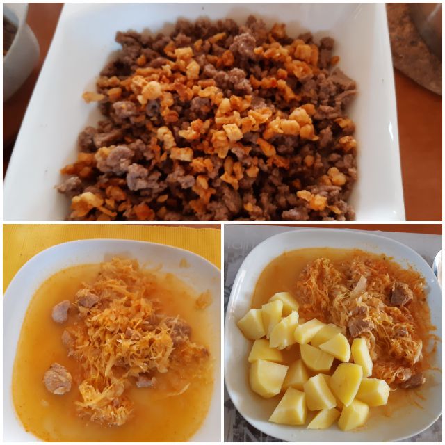 Včeraj segedin iz svežega kislega zelja ( kupljen na tržnici ) krompir v kosih in žganci na koroški način z ocvirki