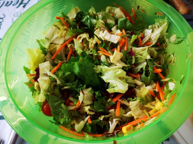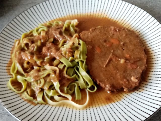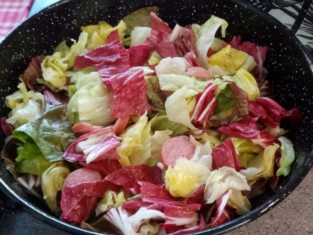 Zeleni široki rezanci, pašticada; zelena solata z radičem