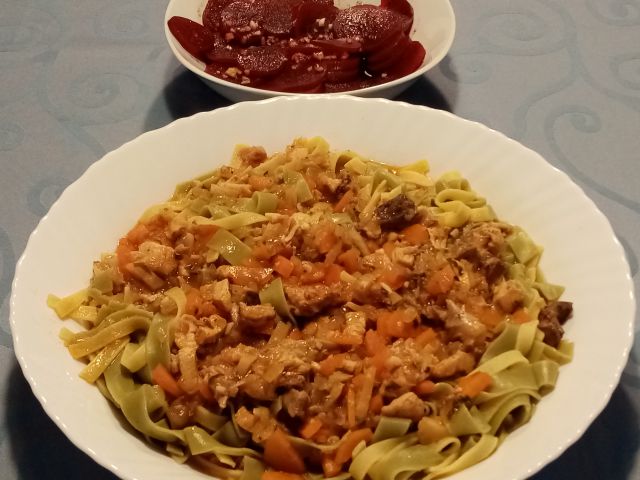 Piščančji paprikaš, široki rezanci; rdeča pesa; bučnica
