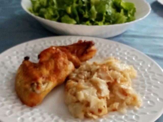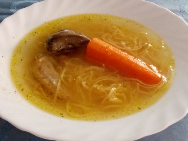 Danes goveja juha z rezanci, polnjena sv.ribica s korenčkom, filano piščančje bedro, kruhova štruca, pražen krompir, solata