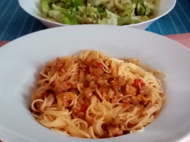 Zelenjavna juha, pohani piščančji zrezki, francoska solat in maffini z drožmi