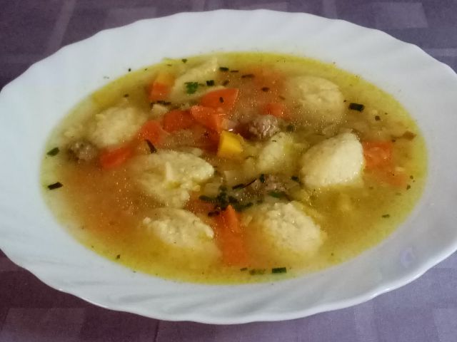 Sreda: Piščančja obara z zelenjavo, gresovi knedli in solata. Trojanski borovničevi krofi.