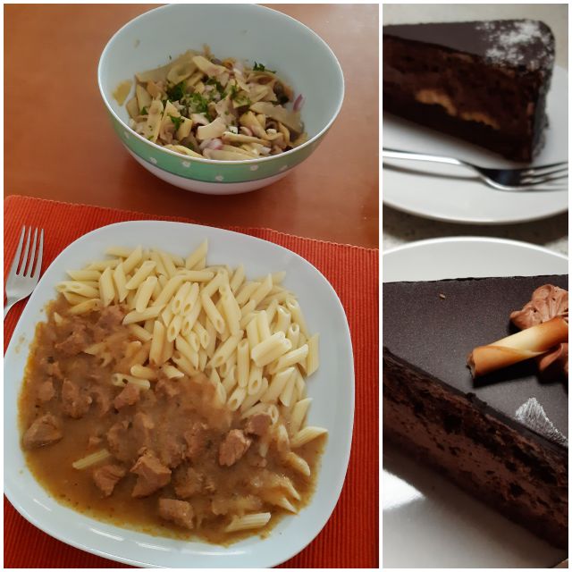 V petek telečji golaž s testeninami, čokoladna in nutelina tortica iz slaščičarne.