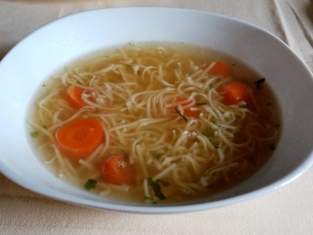 juha (je petelinček po poljih in travnikih pohajal.....) z domačo ribano kašo iz semoline