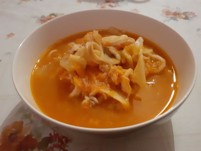 iz ribje glave smuča ter kalamari. Dodala sem še sveže testenine z drožmi, katere sem naredila medtem, ko se je juha kuhala. Sladica - decemberski piškotki in čaj z medom ![]()