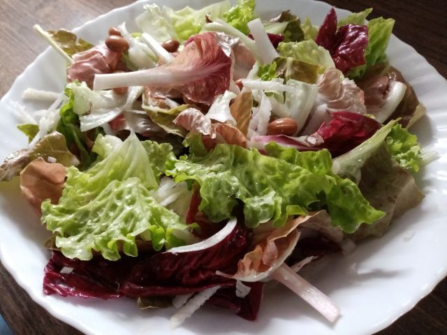 Piščančja juhica; blitva s krompirjem, pečen oslič; radič s fižolom in črno redkvico