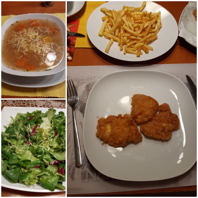 V soboto goveja juha z rezanci, pariški zrezki, pomfrit, mešanica zelenjave, solata