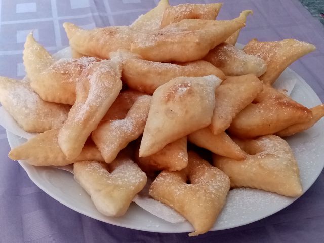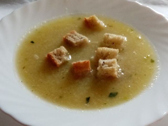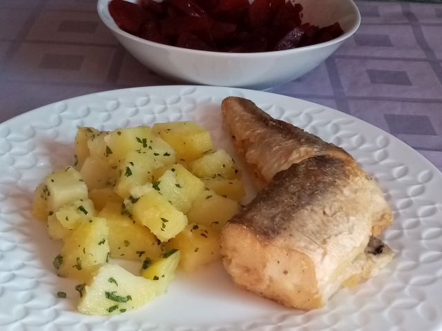 Porovo-česnova juhica; maslen krompir, pražen oslič; rdeča pesa; približuje se pust... nekaj kot langoši