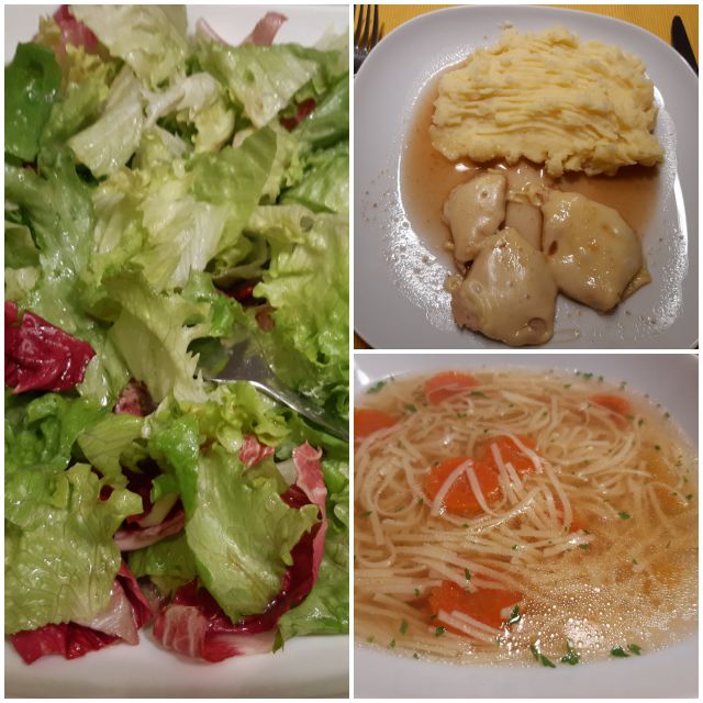 Sreda goveja juha, zrezki s sirom, pire krompir, solata