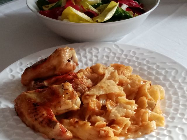 Nedelja: bučna juha, pečen piščanec, široki rezanci, zelena solata